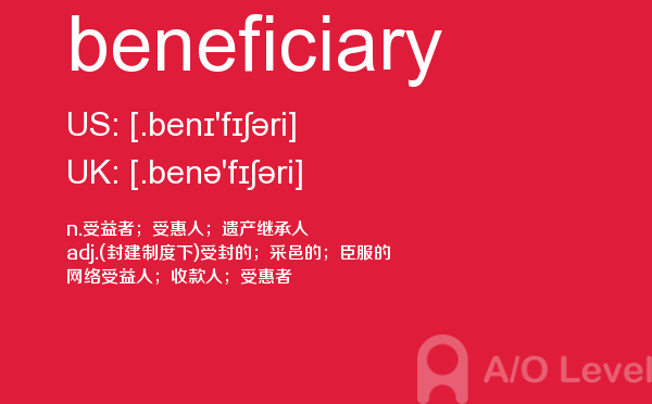a-level(general certificate of education advanced level ),英国高中课程,是英国全民课程体系,是英国普通中等教育证书考试高级水平课程,也是英国学生的大学入学考试课程。今天alevel考试网小编给大家带来的alevel考试单词beneficiary的详细介绍。希望大家能够认真的阅读。如果您想了解alevel物理真题,如何成为alevel老师,英国读alevel,为什么要考alevel课程等关于a-level考试的相关资讯,请继续浏览并关注课窝a/o-level考试网。