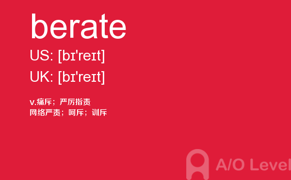 a-level的成绩分为a、b、c、d、e、u六个等级,a为最优,e为通过,u为不及格。如果学生对某门课的成绩不满意,可以选择重考,最终成绩以最好的一次为准。那么a-level考试想要取得a-level高分大家需要做到哪些呢?a/o-level考试网给大家带来的很多a-level考试经验,alevel考试技巧等等,想要考好a-level考试,不仅要知道这些,对于关于a-level考试的所有资讯都需要了解,最重点的是a-level词汇量的积累,今天a/o-level考试网就给大家带来的a-level的考试单词berate的全面解析。如果您想了解alevel机构,南京最好的alevel培训机构,alevel数学题,alevel考试形式等关于a-level考试的相关资讯,请继续浏览并关注课窝a/o-level考试网。