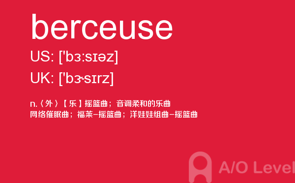 在a-level备考的过程中,想要冲刺到a-level写作的高分,相信大家都应该会知道,除了需要掌握a-level写作的一些技巧之外,优化文章中的词汇和句型也是冲刺高分的关键所在。也就是说,只有充分掌握了语法知识,才能让我们的的文章更为丰富形象。除了a-level写作,在a-level其他方面同学们也需要了解,下面课窝a/o-level考试网小编给大家带来a-level单词berceuse的介绍。如果您想了解alevel会计辅导,alevel物理分数线,alevel学校条件,alevel经济教材等关于a-level考试的相关资讯,请继续浏览并关注课窝a/o-level考试网。