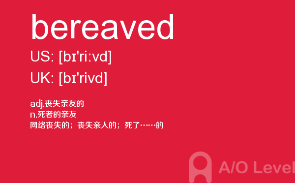 众多周知的英国a-level入学考试是进入英国院校的必经之路,所以我们自然不能小看,建议同学们能够加强a-level考试真题的练习,提前明确英国a-level考试报名的具体信息。为了提高考生们的英国a-level考试成绩,a/o-level考试网小编会每天给大家更新a-level留学资讯和alevel考试资讯,今天带来的是关于a-level考试词汇的单词全解,下面带你学习bereaved的用法。如果您想了解化学alevel2018,alevel物理大纲,新加坡a水准考试难吗,alevel词汇等关于a-level考试的相关资讯,请继续浏览并关注课窝a/o-level考试网。