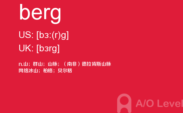 a-level(general certificate of education advanced level ),英国高中课程,是英国全民课程体系,是英国普通中等教育证书考试高级水平课程,也是英国学生的大学入学考试课程。今天alevel考试网小编给大家带来的alevel考试单词berg的详细介绍。希望大家能够认真的阅读。如果您想了解alevel会计辅导,alevel考试培训,alevel物理教材pdf,a水准考试预备班等关于a-level考试的相关资讯,请继续浏览并关注课窝a/o-level考试网。