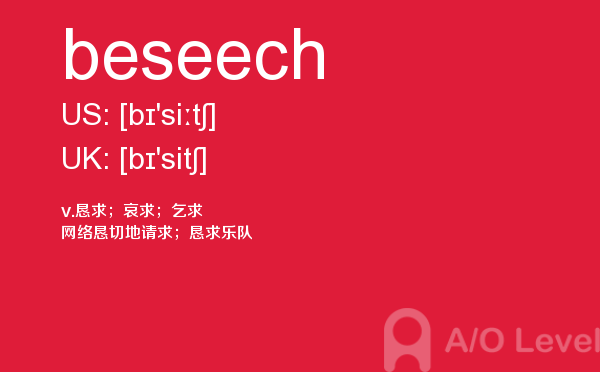 在a-level备考的过程中,想要冲刺到a-level写作的高分,相信大家都应该会知道,除了需要掌握a-level写作的一些技巧之外,优化文章中的词汇和句型也是冲刺高分的关键所在。也就是说,只有充分掌握了语法知识,才能让我们的的文章更为丰富形象。除了a-level写作,在a-level其他方面同学们也需要了解,下面课窝a/o-level考试网小编给大家带来a-level单词beseech的介绍。如果您想了解alevel咨询中心,alevel进阶数学辅导,alevel物理考a难吗,alevel考试哪两个阶段等关于a-level考试的相关资讯,请继续浏览并关注课窝a/o-level考试网。