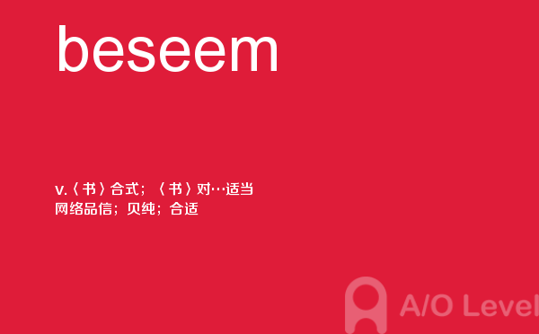 就读于国内学校的学生, 在申请英国学校时需要提交英国a-level考试成绩。很多考生因此英国a-level考试搞得头疼,放松一下,跟着a/o-level考试网来看看英国留学资讯吧!今天课窝a/o-level考试网小编给大家带来a-level考试重点词汇beseem的全解,对你肯定有帮助。如果您想了解alevel大学条件,alevel申请,alevel影视表演学什么,alevel网校等关于a-level考试的相关资讯,请继续浏览并关注课窝a/o-level考试网。