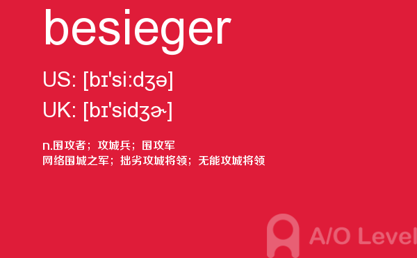 目前,a/olevel逐渐为人所熟知,很多学生都会主动了解alevel考试流程。同时也会抱怨a-level英语题比较难,任务重。那现在我们就放松一下,跟着a/o-level考试网小编来看看a-level考试中要积累的单词besieger,认真的学习积累。如果您想了解alevel课程培训,alevel阅读评分,剑桥大学alevel,alevel和sat等关于a-level考试的相关资讯,请继续浏览并关注课窝a/o-level考试网。