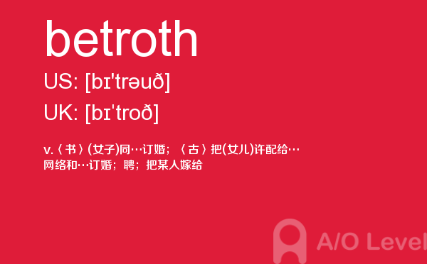 在a-level备考的过程中,想要冲刺到a-level写作的高分,相信大家都应该会知道,除了需要掌握a-level写作的一些技巧之外,优化文章中的词汇和句型也是冲刺高分的关键所在。也就是说,只有充分掌握了语法知识,才能让我们的的文章更为丰富形象。除了a-level写作,在a-level其他方面同学们也需要了解,下面课窝a/o-level考试网小编给大家带来a-level单词betroth的介绍。如果您想了解alevel写作真题,alevel写作分数,新加坡a水准报名费,新alevel等关于a-level考试的相关资讯,请继续浏览并关注课窝a/o-level考试网。