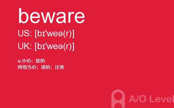 a-level课程包含70多门供学生选择,一般学生选择3至4门来学,中国学生在数学学科上有很大的优势,一般学生都会选择基础数学。学生选择课程时,一般要考虑现在自己的优势科目和将来的发展方向,即你想选择哪个大学、什么专业,从而根据他们的要求有的放矢地选课。关于alevel选课后续会详细介绍,下面带来a-level考试词汇beware的详细介绍。如果您想了解alevel课程选择攻略,经济学alevel拿a难不难,alevel真题网,alevel在线学习等关于a-level考试的相关资讯,请继续浏览并关注课窝a/o-level考试网。