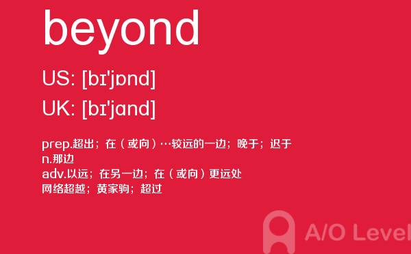 英国留学考试a-level考试考什么?a-level考试题型一定要注意积累和总结。课窝a/o-level考试网小编每天会给大家带来a-level考试的相关资讯,今天带来a-level单词beyond的解析,希望大家认真的积累a-level考试词汇。如果您想了解alevel夏令营,alevel考试的考生年龄上限是多少,alevel中国,alevel答案网站等关于a-level考试的相关资讯,请继续浏览并关注课窝a/o-level考试网。