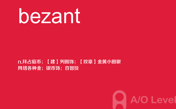 对于a-level考试,我们一再强调要加强a-level考试真题实战,多做英国a-level考试真题。放松一下,跟着a/o-level考试网来积累一下a-level考试中你会用到的单词bezant,对你的a-level考试会有很大的帮助。如果您想了解爱德思alevel答案,alevel词汇下载,中国alevel考点,自学alevel申请大学等关于a-level考试的相关资讯,请继续浏览并关注课窝a/o-level考试网。