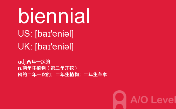 a-level(general certificate of education advanced level ),英国高中课程,是英国全民课程体系,是英国普通中等教育证书考试高级水平课程,也是英国学生的大学入学考试课程。今天alevel考试网小编给大家带来的alevel考试单词biennial的详细介绍。希望大家能够认真的阅读。如果您想了解了解alevel培训,国际部高中课程alevel,查询alevel考试报名信息2018,墨尔本大学alevel要求等关于a-level考试的相关资讯,请继续浏览并关注课窝a/o-level考试网。
