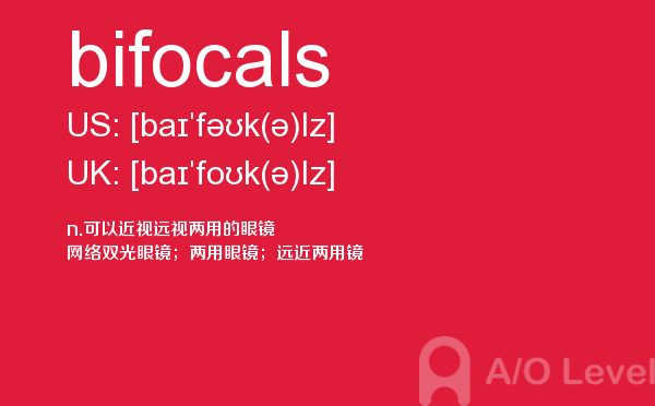 目前,a/olevel逐渐为人所熟知,很多学生都会主动了解alevel考试流程。同时也会抱怨a-level英语题比较难,任务重。那现在我们就放松一下,跟着a/o-level考试网小编来看看a-level考试中要积累的单词bifocals,认真的学习积累。如果您想了解alevel考场地址,alevel中文考试真题,alevel物理常备词汇,alevel辅导等关于a-level考试的相关资讯,请继续浏览并关注课窝a/o-level考试网。