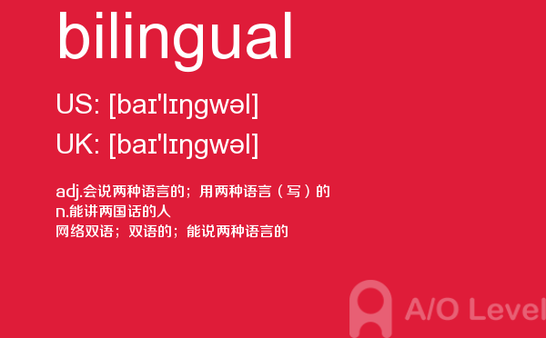 今天课窝a/o-level考试网小编给大家带来alevel考试至关重要的内容a-level单词bilingual的详细介绍。希望大家能够认真的阅读,在备考a-level中会用到,关于a-level考试时间,alevel考试费用等相关问题,可以关注课窝a/o-level考试网。如果您想了解alevel写作,新加坡a水准考试难度,英国alevel排名,a水准考试难不难等关于a-level考试的相关资讯,请继续浏览并关注课窝a/o-level考试网。