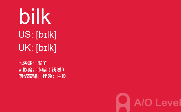 随著学生的素质提升,各大a-level课程培训班的师资和英国a-level题库也不断的完善,近年来学生考出来a-level分数也不断上涨。但是去英国留学,对英国留学资讯和英国的a-level考试资讯都是需要了解的,下面一起跟着a/o-level考试网来看看a-level词汇之bilk的详细介绍。如果您想了解alevel考试费用,a水准一年,alevel英语是什么,新加坡a水准学费等关于a-level考试的相关资讯,请继续浏览并关注课窝a/o-level考试网。