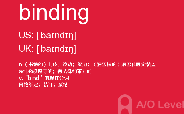 英国a-level考试报名费很好解决,那怎样才能达到a-level考试词汇量要求呢?别再纠结于a-level考试分数要求了,今天我们来一起看看a/o-level考试网今天带给你的a-level单词binding的讲解。如果您想了解a水准考试难度,高考完新加坡a水准,奥克兰大学alevel,alevel考试科目体育等关于a-level考试的相关资讯,请继续浏览并关注课窝a/o-level考试网。