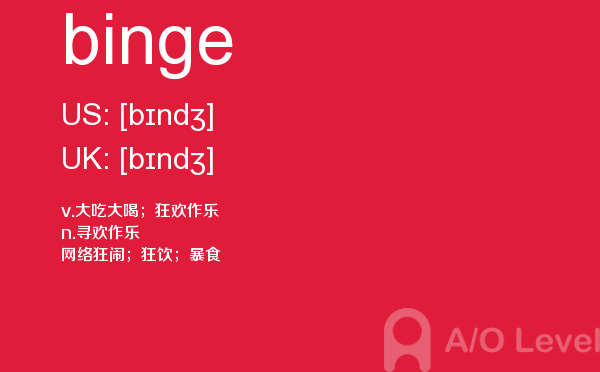 英国a-level考试是英国留学生去英国留学需要参加的考试,很多考生担心a-level考试分数要求高,英国a-level考试难度大,别担心,只要认真的学习a-level考试内容,小编相信大家一定能够考得a-level高分。今天a/o-level考试网给大家带来单词binge的全面解析。如果您想了解alevel报名截止日期,alevel美术课程,alevel可以申请哪里,alevel中学等关于a-level考试的相关资讯,请继续浏览并关注课窝a/o-level考试网。