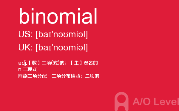 随著学生的素质提升,各大a-level课程培训班的师资和英国a-level题库也不断的完善,近年来学生考出来a-level分数也不断上涨。但是去英国留学,对英国留学资讯和英国的a-level考试资讯都是需要了解的,下面一起跟着a/o-level考试网来看看a-level词汇之binomial的详细介绍。如果您想了解alevel怎么自学,a水准数学,alevel考试指南,alevel自学选什么等关于a-level考试的相关资讯,请继续浏览并关注课窝a/o-level考试网。