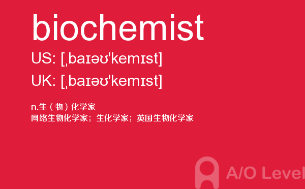 英国a-level考试报名费很好解决,那怎样才能达到a-level考试词汇量要求呢?别再纠结于a-level考试分数要求了,今天我们来一起看看a/o-level考试网今天带给你的a-level单词biochemist的讲解。如果您想了解alevel课程有年龄限制,爱德思alevel2017真题,alevel化学辅导,a水准考试等关于a-level考试的相关资讯,请继续浏览并关注课窝a/o-level考试网。