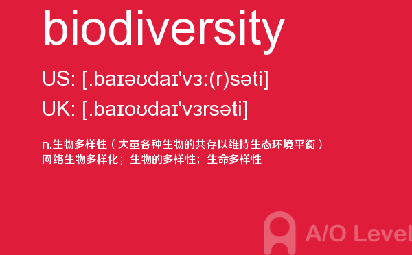 在a-level备考的过程中,想要冲刺到a-level写作的高分,相信大家都应该会知道,除了需要掌握a-level写作的一些技巧之外,优化文章中的词汇和句型也是冲刺高分的关键所在。也就是说,只有充分掌握了语法知识,才能让我们的的文章更为丰富形象。除了a-level写作,在a-level其他方面同学们也需要了解,下面课窝a/o-level考试网小编给大家带来a-level单词biodiversity的介绍。如果您想了解英国alevel官网,alevel培训费用,alevel双语教材,alevel数学真题下载等关于a-level考试的相关资讯,请继续浏览并关注课窝a/o-level考试网。