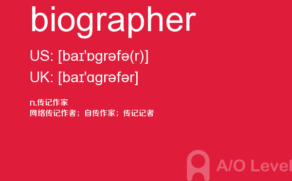 a-level(general certificate of education advanced level ),英国高中课程,是英国全民课程体系,是英国普通中等教育证书考试高级水平课程,也是英国学生的大学入学考试课程。今天alevel考试网小编给大家带来的alevel考试单词biographer的详细介绍。希望大家能够认真的阅读。如果您想了解alevel教育网,在线alevel辅导,bc和alevel哪个好,alevel物理真题等关于a-level考试的相关资讯,请继续浏览并关注课窝a/o-level考试网。