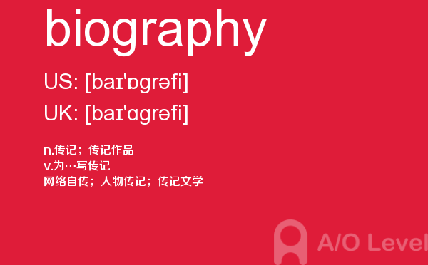 在a-level备考的过程中,想要冲刺到a-level写作的高分,相信大家都应该会知道,除了需要掌握a-level写作的一些技巧之外,优化文章中的词汇和句型也是冲刺高分的关键所在。也就是说,只有充分掌握了语法知识,才能让我们的的文章更为丰富形象。除了a-level写作,在a-level其他方面同学们也需要了解,下面课窝a/o-level考试网小编给大家带来a-level单词biography的介绍。如果您想了解a水准考试范围,一年读完alevel,高中alevel考试,alevel官方报名等关于a-level考试的相关资讯,请继续浏览并关注课窝a/o-level考试网。