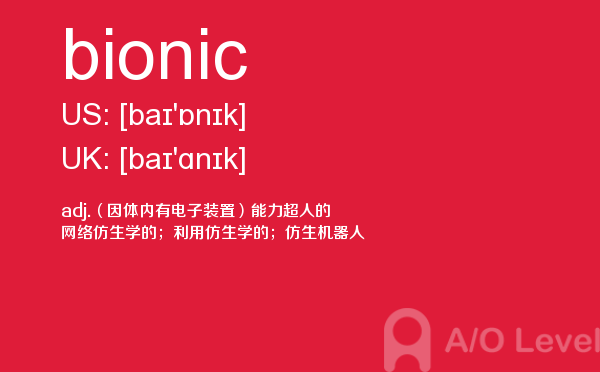 a-level课程包含70多门供学生选择,一般学生选择3至4门来学,中国学生在数学学科上有很大的优势,一般学生都会选择基础数学。学生选择课程时,一般要考虑现在自己的优势科目和将来的发展方向,即你想选择哪个大学、什么专业,从而根据他们的要求有的放矢地选课。关于alevel选课后续会详细介绍,下面带来a-level考试词汇bionic的详细介绍。如果您想了解alevel上海培训,alevel教育网,alevel物理中文,alevel中考等关于a-level考试的相关资讯,请继续浏览并关注课窝a/o-level考试网。