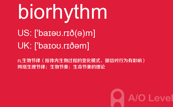 就读于国内学校的学生, 在申请英国学校时需要提交英国a-level考试成绩。很多考生因此英国a-level考试搞得头疼,放松一下,跟着a/o-level考试网来看看英国留学资讯吧!今天课窝a/o-level考试网小编给大家带来a-level考试重点词汇biorhythm的全解,对你肯定有帮助。如果您想了解爱德思alevel答案,alevel词汇下载,中国alevel考点,自学alevel申请大学等关于a-level考试的相关资讯,请继续浏览并关注课窝a/o-level考试网。