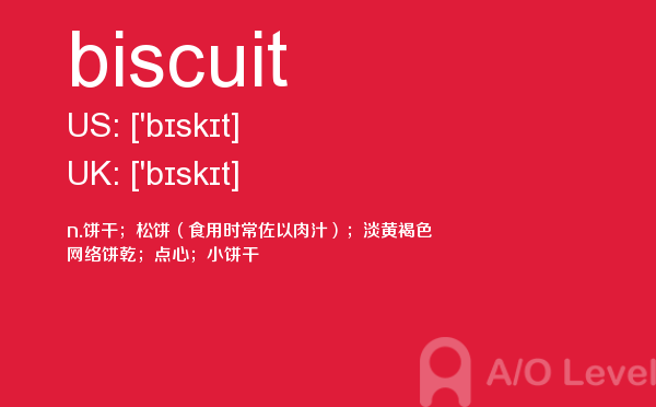 目前,a/olevel逐渐为人所熟知,很多学生都会主动了解alevel考试流程。同时也会抱怨a-level英语题比较难,任务重。那现在我们就放松一下,跟着a/o-level考试网小编来看看a-level考试中要积累的单词biscuit,认真的学习积累。如果您想了解alevel零基础,在线alevel课程,alevel考试教材,a水准考试预科班等关于a-level考试的相关资讯,请继续浏览并关注课窝a/o-level考试网。