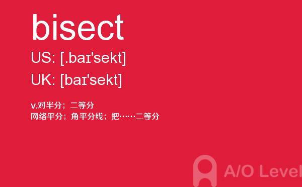 就读于国内学校的学生, 在申请英国学校时需要提交英国a-level考试成绩。很多考生因此英国a-level考试搞得头疼,放松一下,跟着a/o-level考试网来看看英国留学资讯吧!今天课窝a/o-level考试网小编给大家带来a-level考试重点词汇bisect的全解,对你肯定有帮助。如果您想了解alevel化学真题,alevel课程物理,alevel考试时间安排,alevel报名官网等关于a-level考试的相关资讯,请继续浏览并关注课窝a/o-level考试网。