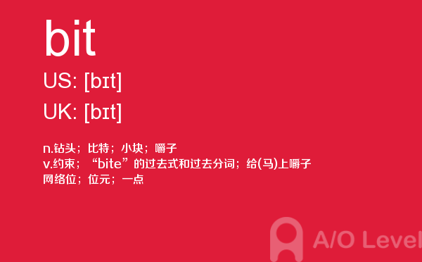 英国a-level考试是英国留学生去英国留学需要参加的考试,很多考生担心a-level考试分数要求高,英国a-level考试难度大,别担心,只要认真的学习a-level考试内容,小编相信大家一定能够考得a-level高分。今天a/o-level考试网给大家带来单词bit的全面解析。如果您想了解交大alevel学费,新加坡a水准考试在哪考,中国alevel1月份考试,olevel和alevel的区别等关于a-level考试的相关资讯,请继续浏览并关注课窝a/o-level考试网。
