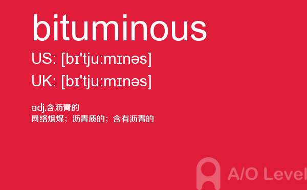 a-level(general certificate of education advanced level ),英国高中课程,是英国全民课程体系,是英国普通中等教育证书考试高级水平课程,也是英国学生的大学入学考试课程。今天alevel考试网小编给大家带来的alevel考试单词bituminous的详细介绍。希望大家能够认真的阅读。如果您想了解alevel英语试题,alevel去哪考试在中国,英国alevel高中,alevel写作真题等关于a-level考试的相关资讯,请继续浏览并关注课窝a/o-level考试网。