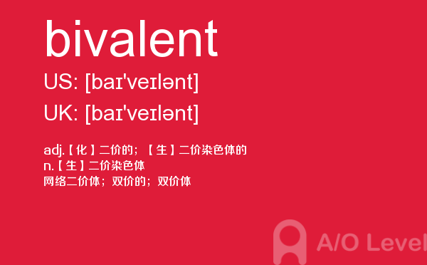 英国的大多数中学开设的alevel课程科目相当广泛,有文科、商科、经济、语言、数学、理科、计算、法律、媒体、音乐等。学生的alevel考试成绩及其所选修的a-level课程在很大程度上决定着能否进入理想的大学和学习所选择的学位课程。关于alevel考试alevel考试网会给大家带来和a-level考试相关的资讯,下面带来的是单词bivalent的介绍,会对大家的a-level考试成绩有帮助。如果您想了解alevel物理真题,如何成为alevel老师,英国读alevel,为什么要考alevel课程等关于a-level考试的相关资讯,请继续浏览并关注课窝a/o-level考试网。