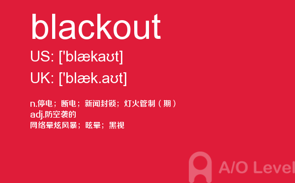 a-level考试报名须知是必须要懂得,这样在面对英国a-level入学考试的时候自己也知道应该怎么面对。为了提高考生们的a-level模拟考卷成绩,a/o-level考试网会经常给大家带来a-level考试资讯,下面就是今天课窝a/o-level考试网小编给大家讲解关于a-level考试词汇blackout怎么用。如果您想了解alevel考试资料,alevel中文书目,a水准培训班,自学alevel成绩等关于a-level考试的相关资讯,请继续浏览并关注课窝a/o-level考试网。