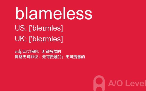 虽然英国a-level院校招生官常把“成绩不是决定录取与否的唯一因素”挂在嘴边,但不得不承认,a-level分数是学生优秀与否的有力证据,取得a-level成绩高分是肯定是优先考虑的。放松一下,先跟着a/o-level考试网来看看今天小编带来的是a-level单词blameless的介绍。如果您想了解a水准考试范围,一年读完alevel,高中alevel考试,alevel官方报名等关于a-level考试的相关资讯,请继续浏览并关注课窝a/o-level考试网。