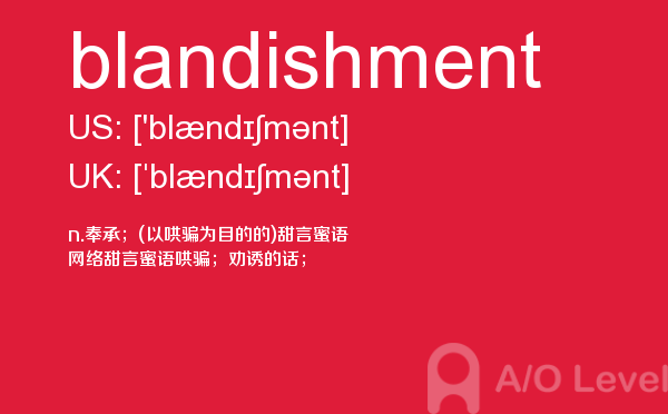 随着英国留学申请竞争的白热化,a-level成绩在学生个人简历中扮演的“入场券”角色,变得越来越重要。然而,在你参加a-level考试培训班前,你首先要对a-level考试有着一定的了解,一起跟着a/o-level考试网来看看小编今天带来a-level单词blandishment的详细介绍。如果您想了解alevel化学知识点,新加坡a水准试题,alevel考试备考,a水准考试美国等关于a-level考试的相关资讯,请继续浏览并关注课窝a/o-level考试网。