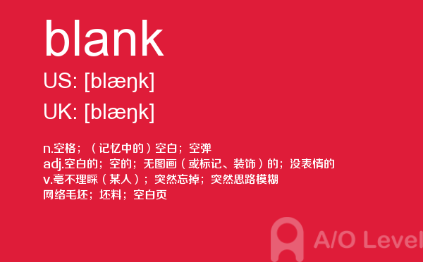 众多周知的英国a-level入学考试是进入英国院校的必经之路,所以我们自然不能小看,建议同学们能够加强a-level考试真题的练习,提前明确英国a-level考试报名的具体信息。为了提高考生们的英国a-level考试成绩,a/o-level考试网小编会每天给大家更新a-level留学资讯和alevel考试资讯,今天带来的是关于a-level考试词汇的单词全解,下面带你学习blank的用法。如果您想了解alevel考什么,alevel水平考试,alevel数学包括什么,英国中学排名alevel等关于a-level考试的相关资讯,请继续浏览并关注课窝a/o-level考试网。