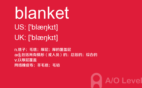 a-level课程包含70多门供学生选择,一般学生选择3至4门来学,中国学生在数学学科上有很大的优势,一般学生都会选择基础数学。学生选择课程时,一般要考虑现在自己的优势科目和将来的发展方向,即你想选择哪个大学、什么专业,从而根据他们的要求有的放矢地选课。关于alevel选课后续会详细介绍,下面带来a-level考试词汇blanket的详细介绍。如果您想了解alevel中国,alevel试卷,国内a水准学校,alevel数学等关于a-level考试的相关资讯,请继续浏览并关注课窝a/o-level考试网。