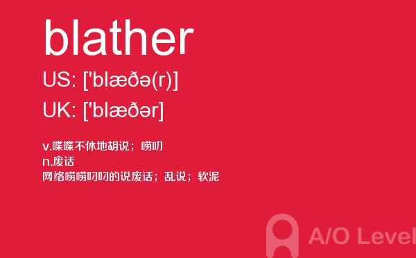 目前,a/olevel逐渐为人所熟知,很多学生都会主动了解alevel考试流程。同时也会抱怨a-level英语题比较难,任务重。那现在我们就放松一下,跟着a/o-level考试网小编来看看a-level考试中要积累的单词blather,认真的学习积累。如果您想了解alevel零基础,在线alevel课程,alevel考试教材,a水准考试预科班等关于a-level考试的相关资讯,请继续浏览并关注课窝a/o-level考试网。