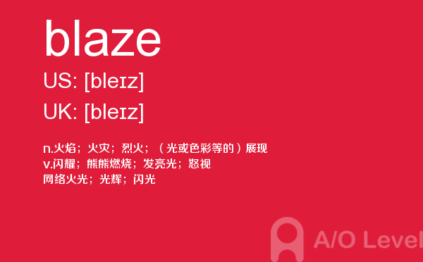 英国a-level学校,从教学质量上来看私立学校更占优势,大部分中国留学生也选择私立学校来读,不过一般都是提前一年来申请学校。中国目前也有20几所a-level学校,每年也同样有走进剑桥牛津等世界顶级大学的学生。所以在国外和在国内都可以选择a-level学校来学习。在前面关于a-level选校的问题已经详细介绍过,那么今天a/o-level考试网小编主要想介绍的是a-level重难点词汇blaze。希望对大家有帮助。如果您想了解alevel经济学大纲,英国高中alevel排名,alevel试卷,用alevel成绩申请大学等关于a-level考试的相关资讯,请继续浏览并关注课窝a/o-level考试网。