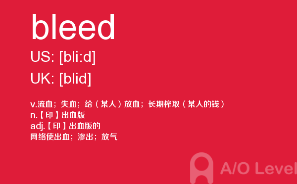 现在申请英国院校的中国孩子非常多,几乎每一个学生都在为一种叫做英国a-level的考试而努力着。a/o-level考试网老师为大家解析a-level考试重难点单词bleed,大家认真学习,会有帮助。如果您想了解alevel考场地址,alevel中文考试真题,alevel物理常备词汇,alevel辅导等关于a-level考试的相关资讯,请继续浏览并关注课窝a/o-level考试网。