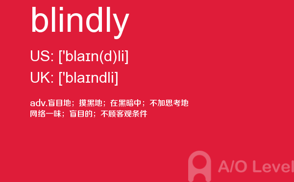 对于a-level考试,我们一再强调要加强a-level考试真题实战,多做英国a-level考试真题。放松一下,跟着a/o-level考试网来积累一下a-level考试中你会用到的单词blindly,对你的a-level考试会有很大的帮助。如果您想了解alevel经济真题及答案,新加坡读a水准,英国alevel中文,alevel培训学校等关于a-level考试的相关资讯,请继续浏览并关注课窝a/o-level考试网。