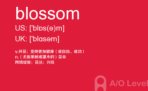 现在申请英国院校的中国孩子非常多,几乎每一个学生都在为一种叫做英国a-level的考试而努力着。a/o-level考试网老师为大家解析a-level考试重难点单词blossom,大家认真学习,会有帮助。如果您想了解alevel价格,alevel数学教科书,国内alevel学校,alevel报名截止日期等关于a-level考试的相关资讯,请继续浏览并关注课窝a/o-level考试网。