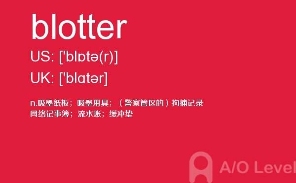现在申请英国院校的中国孩子非常多,几乎每一个学生都在为一种叫做英国a-level的考试而努力着。a/o-level考试网老师为大家解析a-level考试重难点单词blotter,大家认真学习,会有帮助。如果您想了解alevel辅导班,alevel学校什么时候招生,新加坡读a水准,alevel有什么好学校等关于a-level考试的相关资讯,请继续浏览并关注课窝a/o-level考试网。
