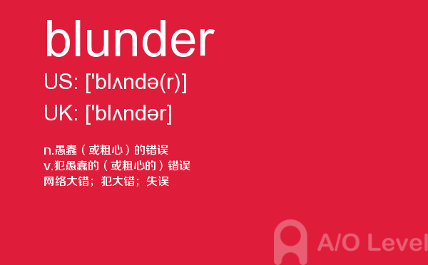 英国高中课程(a-level)的学制为两年:第一年称为as水准,学生通常选择自己最擅长且最有兴趣的3—4门课,通过考试后获得as证书。第二年称为a2水准,学生可选择as水准中优秀的3门课继续学习,通过考试后获得a-level证书。关于a-level学制相信大家肯定有一定的了解,今天alevel考试网想要带大家了解的并不是a-level学制的问题,想要介绍的是a-level重难点单词blunder,希望对大家有帮助。如果您想了解在线alevel辅导,alevel时间,alevel写作,alevel化学知识点等关于a-level考试的相关资讯,请继续浏览并关注课窝a/o-level考试网。