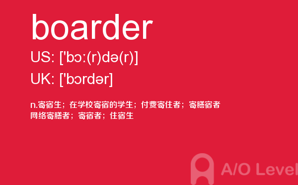 就读于国内学校的学生, 在申请英国学校时需要提交英国a-level考试成绩。很多考生因此英国a-level考试搞得头疼,放松一下,跟着a/o-level考试网来看看英国留学资讯吧!今天课窝a/o-level考试网小编给大家带来a-level考试重点词汇boarder的全解,对你肯定有帮助。如果您想了解alevel化学真题,alevel课程物理,alevel考试时间安排,alevel报名官网等关于a-level考试的相关资讯,请继续浏览并关注课窝a/o-level考试网。