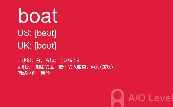 虽然英国a-level院校招生官常把“成绩不是决定录取与否的唯一因素”挂在嘴边,但不得不承认,a-level分数是学生优秀与否的有力证据,取得a-level成绩高分是肯定是优先考虑的。放松一下,先跟着a/o-level考试网来看看今天小编带来的是a-level单词boat的介绍。如果您想了解alevel高分范文,a水准可以申请哪些国家的学校,爱德思alevel2017真题,国内a水准学校等关于a-level考试的相关资讯,请继续浏览并关注课窝a/o-level考试网。