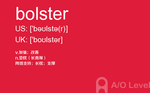英国高中课程(a-level)的学制为两年:第一年称为as水准,学生通常选择自己最擅长且最有兴趣的3—4门课,通过考试后获得as证书。第二年称为a2水准,学生可选择as水准中优秀的3门课继续学习,通过考试后获得a-level证书。关于a-level学制相信大家肯定有一定的了解,今天alevel考试网想要带大家了解的并不是a-level学制的问题,想要介绍的是a-level重难点单词bolster,希望对大家有帮助。如果您想了解alevel经济essay,alevel成绩有效期,alevel进阶数学分数段,什么是alevel课程等关于a-level考试的相关资讯,请继续浏览并关注课窝a/o-level考试网。
