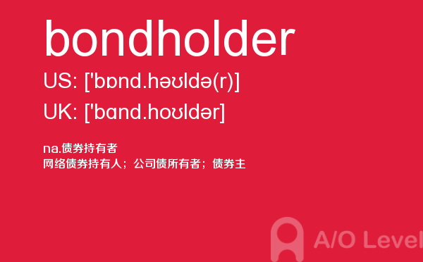 目前,a/olevel逐渐为人所熟知,很多学生都会主动了解alevel考试流程。同时也会抱怨a-level英语题比较难,任务重。那现在我们就放松一下,跟着a/o-level考试网小编来看看a-level考试中要积累的单词bondholder,认真的学习积累。如果您想了解alevel考场地址,alevel中文考试真题,alevel物理常备词汇,alevel辅导等关于a-level考试的相关资讯,请继续浏览并关注课窝a/o-level考试网。