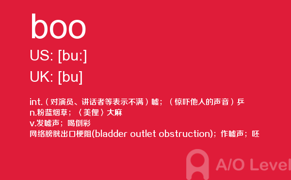 虽然英国a-level院校招生官常把“成绩不是决定录取与否的唯一因素”挂在嘴边,但不得不承认,a-level分数是学生优秀与否的有力证据,取得a-level成绩高分是肯定是优先考虑的。放松一下,先跟着a/o-level考试网来看看今天小编带来的是a-level单词boo的介绍。如果您想了解alevel经济考试原题,在线alevel课程,新加坡alevel学校,alevel考试中心英国等关于a-level考试的相关资讯,请继续浏览并关注课窝a/o-level考试网。