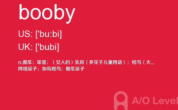 目前,a/olevel逐渐为人所熟知,很多学生都会主动了解alevel考试流程。同时也会抱怨a-level英语题比较难,任务重。那现在我们就放松一下,跟着a/o-level考试网小编来看看a-level考试中要积累的单词booby,认真的学习积累。如果您想了解alevel是上机的考试形式吗,a水准一年,爱德思alevel真题,alevel考什么等关于a-level考试的相关资讯,请继续浏览并关注课窝a/o-level考试网。