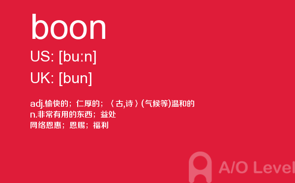 众多周知的英国a-level入学考试是进入英国院校的必经之路,所以我们自然不能小看,建议同学们能够加强a-level考试真题的练习,提前明确英国a-level考试报名的具体信息。为了提高考生们的英国a-level考试成绩,a/o-level考试网小编会每天给大家更新a-level留学资讯和alevel考试资讯,今天带来的是关于a-level考试词汇的单词全解,下面带你学习boon的用法。如果您想了解剑桥alevel课程费用,alevel真题,新加坡a水准预科学院,alevel物理知识点等关于a-level考试的相关资讯,请继续浏览并关注课窝a/o-level考试网。