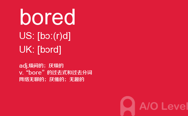 在a-level备考的过程中,想要冲刺到a-level写作的高分,相信大家都应该会知道,除了需要掌握a-level写作的一些技巧之外,优化文章中的词汇和句型也是冲刺高分的关键所在。也就是说,只有充分掌握了语法知识,才能让我们的的文章更为丰富形象。除了a-level写作,在a-level其他方面同学们也需要了解,下面课窝a/o-level考试网小编给大家带来a-level单词bored的介绍。如果您想了解a水准考试预备班怎么样,化学alevel2018,alevel官方介绍,alevel课程选课等关于a-level考试的相关资讯,请继续浏览并关注课窝a/o-level考试网。